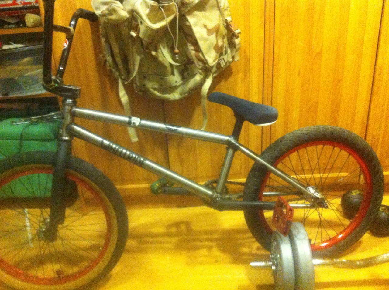 Рама:Mutantbikes Lobo v.3 Вилка:Fly Agua 32 крашена в черно матовый Шатуны: ноунеум 8 шлицов так же крашены в черноматовый Звезда:Хрениум,черноматовая,раньше была оранж,краска слезет быстро Педали:Велко Седло:мутант обшита джинсой Руль:Вб хз какой размер Вынос:Сандей потрепаный черный Перед колесо: Обод ноунейм красный,втулка ноунейм шарики,покра демолююшин моментум Зад колесо:ПС импульс СДС, обод скайларк,покра моментум, нехватает 3-4 спиц Дергается крутиться на ура,есть только трабл с крышкой рулевой и выносом, вынос покацан от напильника , а крышка внутри слетел шестигранник , по этому мною было решено стачить края крышки под 32 ключ,лечиться заменой стальным болтом. ценник пусть будет 20к, быстрым отдам доп.стаф |