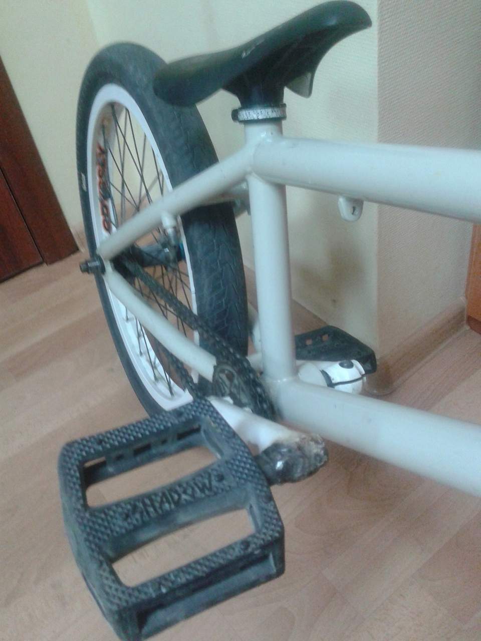 Размер 20.5 вилка: primo kamikaze Руль: Set Blackout bar 9.75(ширина 30) Рулевая колонка: colony вынос: Shadow Strike Front Load грипсы : Odi Longneck каретка : Code mid 19 мм подседельный зажим: Shadow Alfred Передняя покрышка KHE Premium Street / 2.1 кевлар Задняя покрышка Eclat Escape / 2.1. стальной корд Седло: eclat complex без обшивки Шатуны: WTP salt(оба заваренные в месте крепления с педалями, см.фото ниже) Звезда: Subrosa Devil Disc Педали: Shadow Цепь shadow interlock v2 заднее колесо: задний обод- odyssey seven k-a Втулка задняя KHE Radio EAS спицы code 2 мм 14g переднее колесо : передний обод- odyssey seven k-a передняя втулка infect 2801 спицы code 2мм 14g Имеются лишь царапины, потертости на всем байке, ибо катаный. Никаких сколов или трещин нет. Цепь новая, оставшиеся звенья отдам с коробкой. Есть в наличии руль Verde Сartel bar 8.25, имеются царапины, вмятин нет, отдам даром. Также отдам даром защиту наколенники fuse dfs light c новым котелком fuse и др. ништяки. Цена байка 12к тугриков, со всем остальным вместе за 14к отдам сразу. Уместен адекватный торг. Территориально г.Москва м.Первомайская. Обращаться по тел. 8-968-472-84-20 Последний раз редактировалось BaruHaTop, 21.06.2015 в 02:36. |