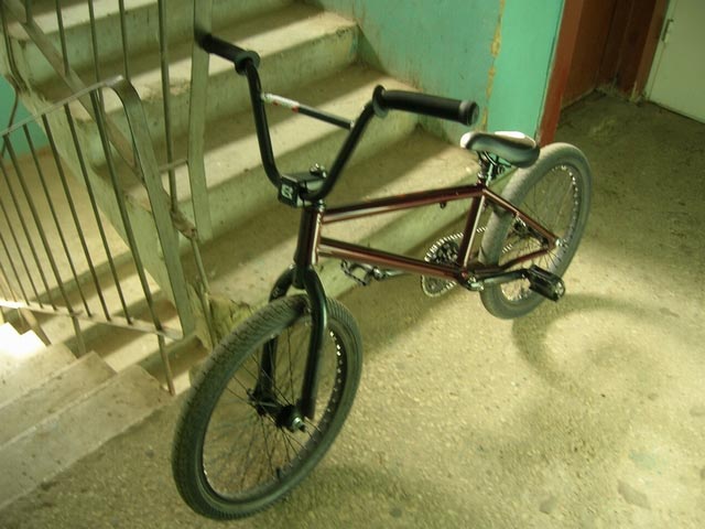 Вилка: Не помню Руль: Twenty French Kiss Bar Рулевая: FSA NO-16 Вынос: Eastern Bikes Каретка: Twenty Spanish BB Шатуны: GT 3 эл CrMo (будут холобайты) Звезда: Eastern Medusa 36T Педали: Пластмассовые Welgo))) Light Street Цепь: K710 Chain Подсидел: Eastern Id Seat Post Зажим: Twenty Light Seat Clamp Седло: Eastern Tight Ass Seat Заднее колесо: Обод: Alex Rims G303 Спицы: 48H Покрышка: IRC Hardies Переднее колесо: Обод: Alex Rims G303 Спицы: 48H Покрышка: KENDA Kovert Скоро соберу себе новыйе колёсики и вилку сменю а то уже стыдно!