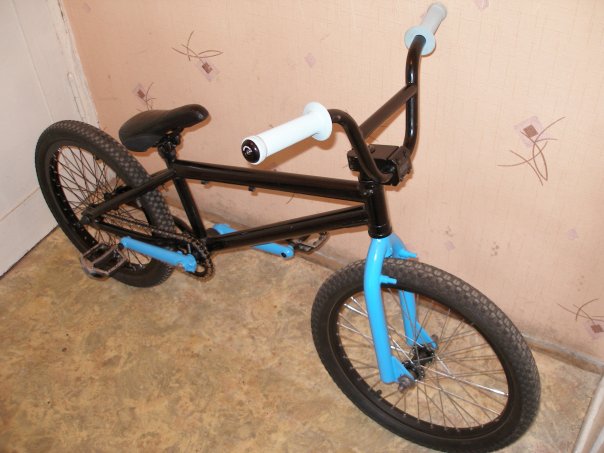 Зад. колесо: втулка: Odyssey HZDCST V3 10T обод: Odyssey Hazard lite спицы: DT звезда: Demolition F1 Sprocket цепь: KMС 910 грипсы: Hoffman Dimple баренды: Odyssey Bar severs P.S. Вилку и шатуны красил сам =) P.S.S. Поменяю раму и тогда пеги поставлю. |